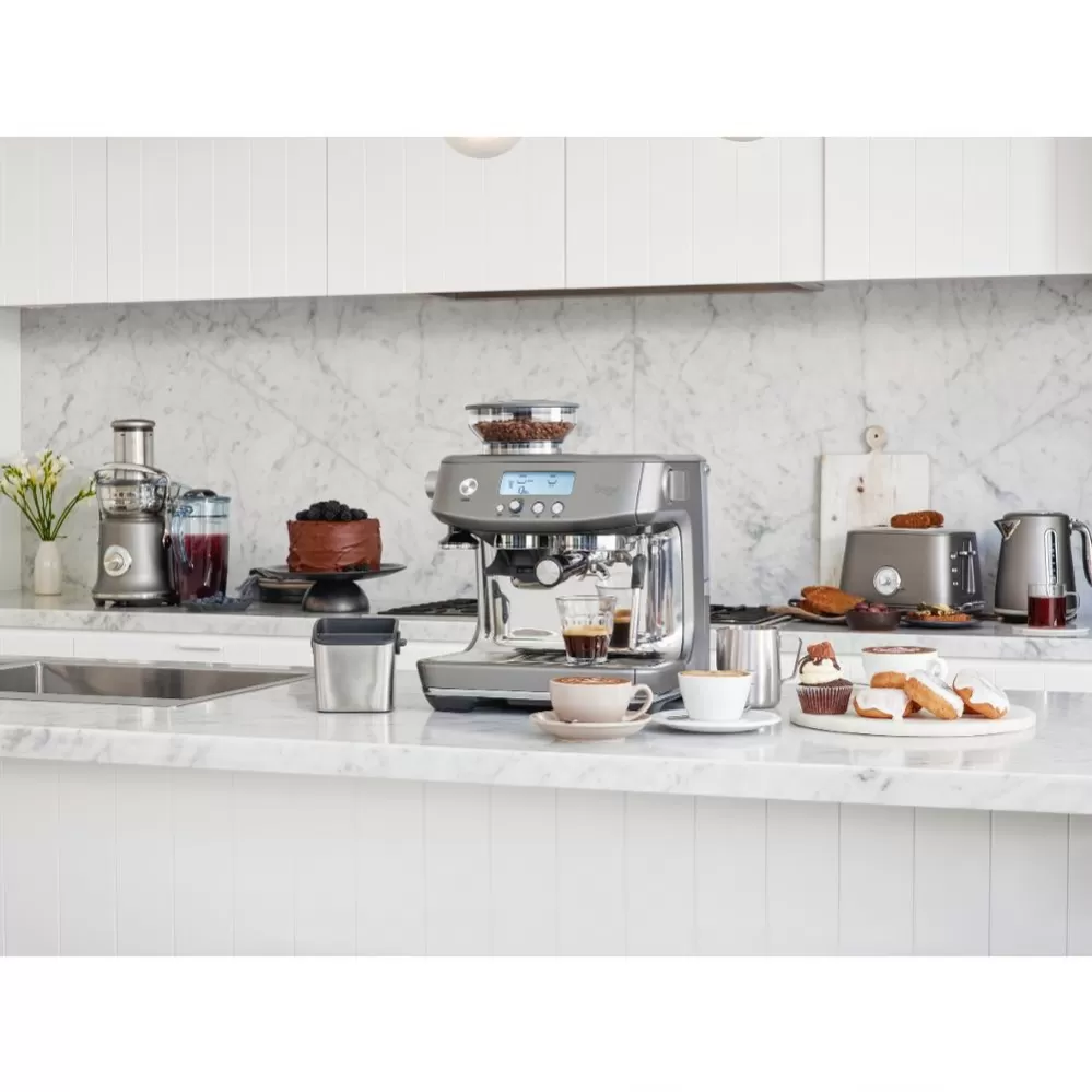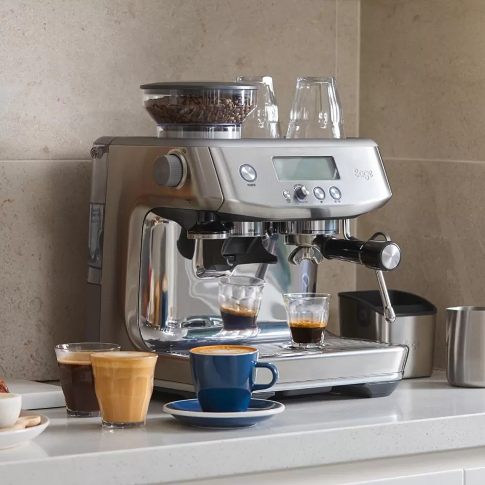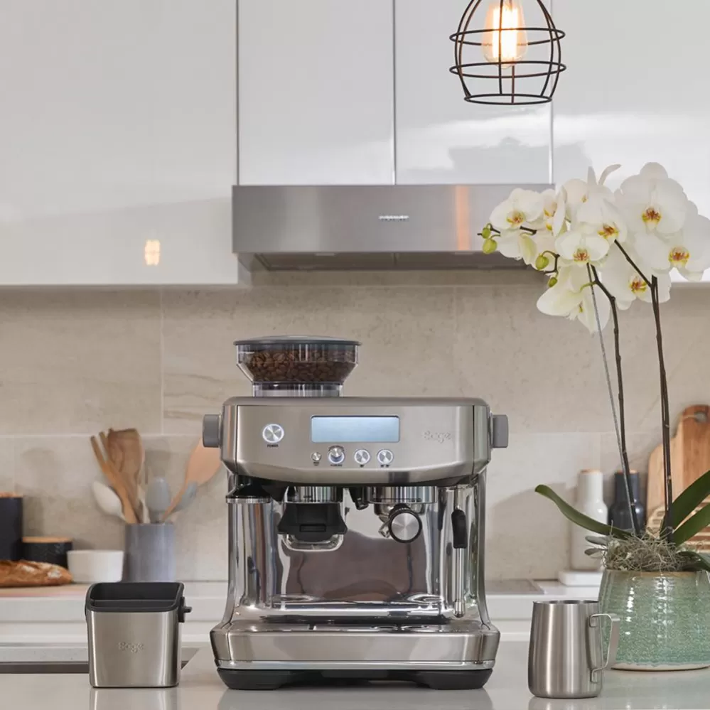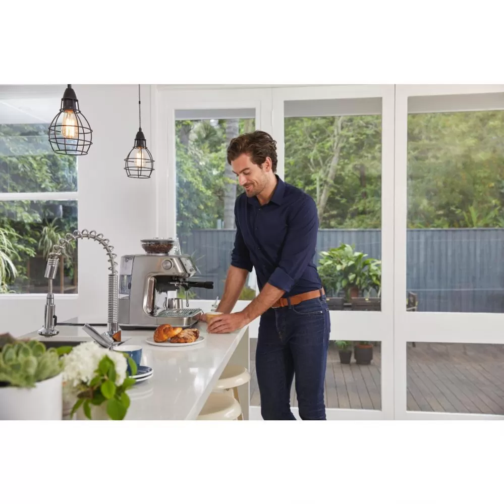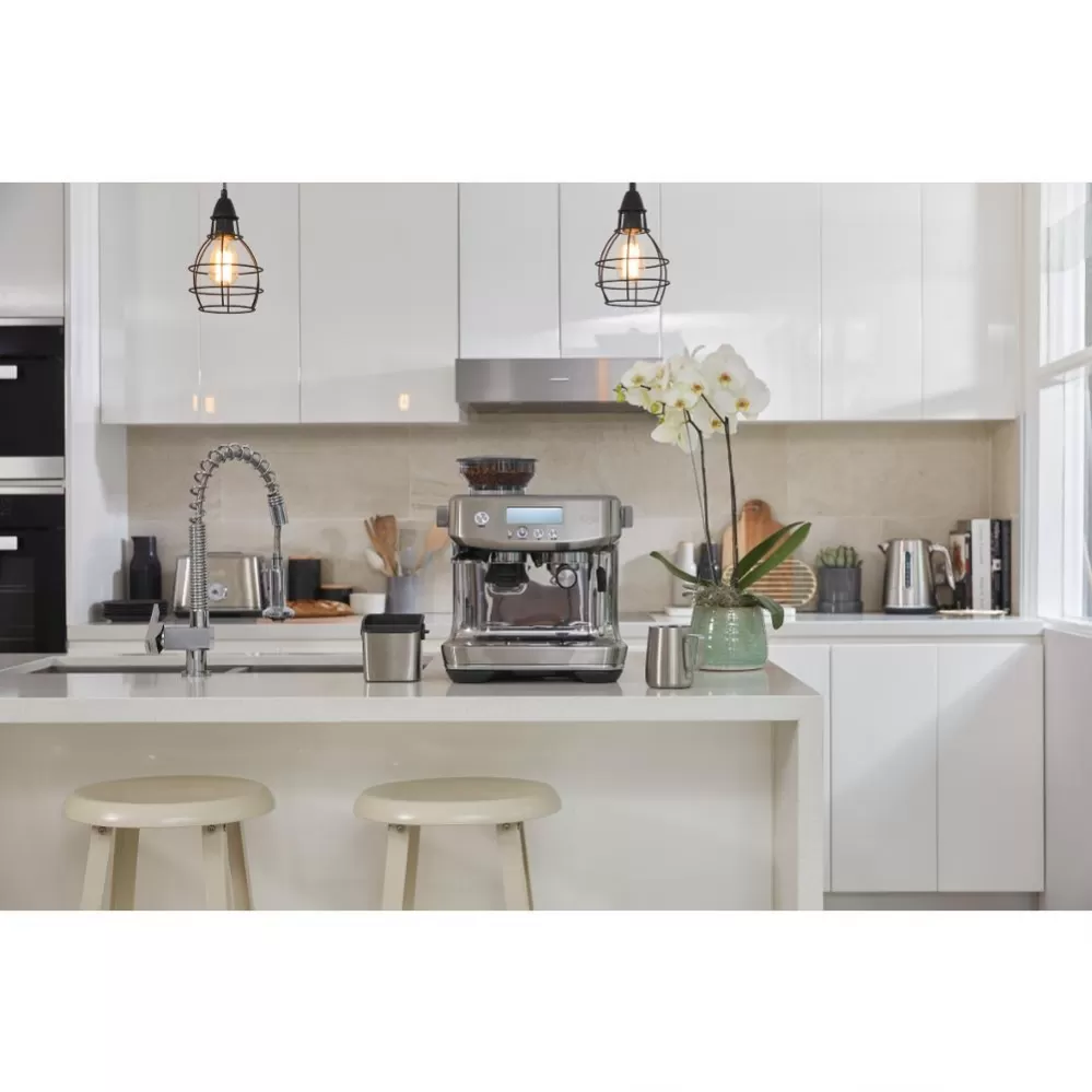 Pákové Espresso The Barista Pro™ doplňuje nejprodávanější řadu Barista kávovarů s integrovaným mlýnkem. Disponuje novým LCD displejem a novým intuitivním rozhraním, které je přehlednější a umožňuje tak přesnější nastavení mlýnku (až 30 různých nastavení hrubosti kávy), také umožňuje nastavit teplotu vody extrakce kávy.